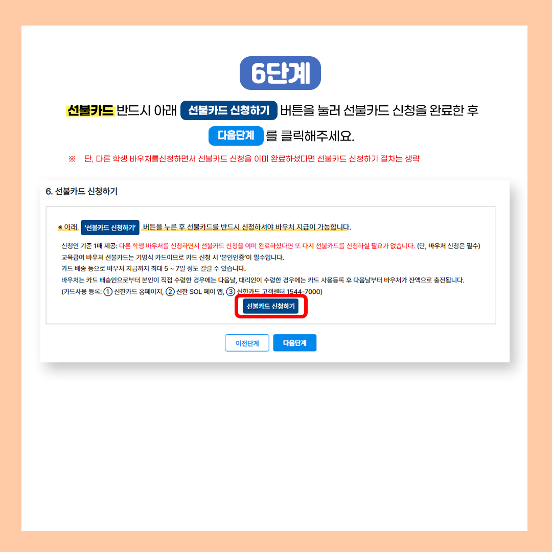 | 선불카드 | 신청 시 자동 발급 (기명 등록 필수) |
