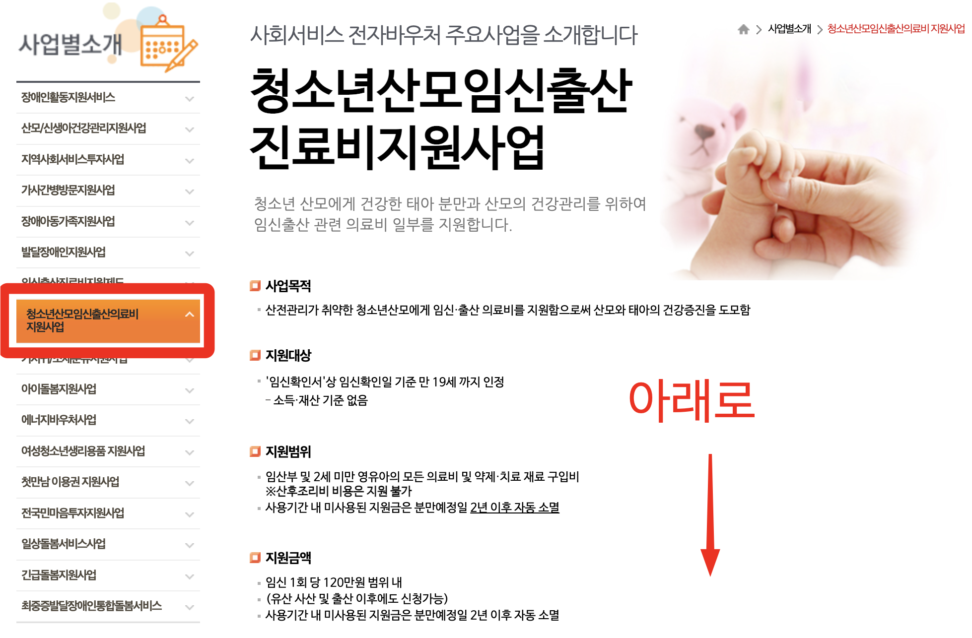 - 임신 1회당 최대 120만 원 지원